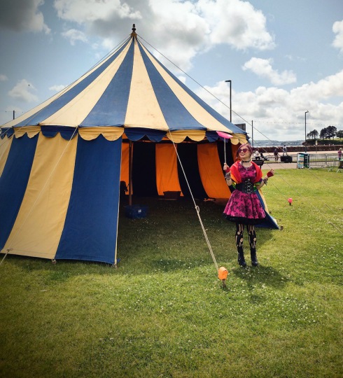 The Mini Big Top is a real tent (not a gazebo or similar free standing structure) and as such requires a reasonably flat grassy area to put it up on. Once erected it is a sturdy structure suitable to be left in place for multi day events such as music festivals, or longer stays at venues for special events.